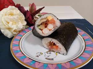 2月3日の節分。最近は恵方巻を食べるのが定着してきましたが、元々は関西地方の風物詩だったそうです。イワシを焼いてヒイラギの葉に通して玄関に飾ると鬼が臭いに負けて逃げていくと言われています。今年の恵方は南南東のやや右、だそうです。。私はこのブログの為に昨日(2月2日)に恵方巻を購入して、まるかぶり出来る様切らずに写真をと思いましたが、何ともつまらない真っ黒の棒みたいな写真になってしまったので、半分に切ってしまいました